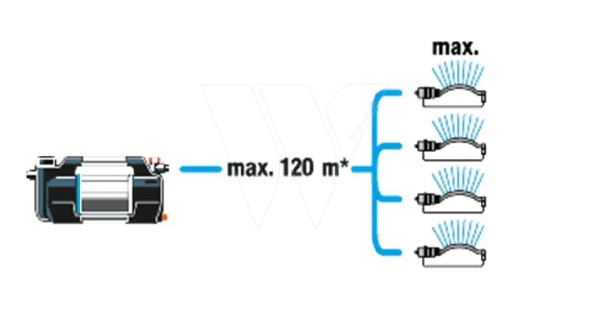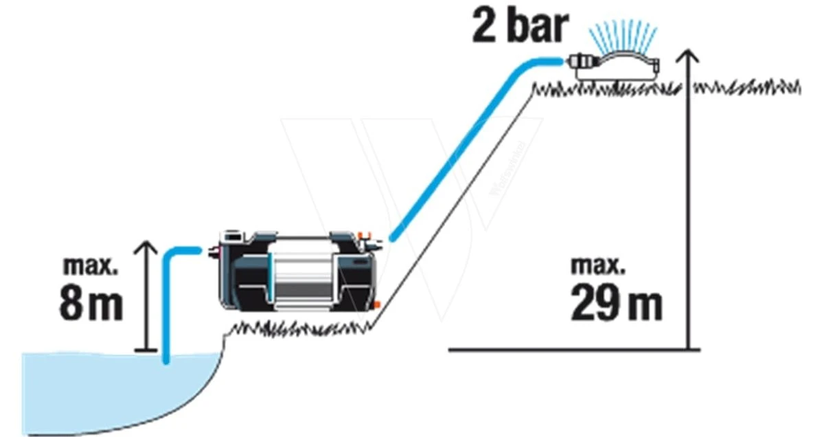 Hij heeft een doorvoercapaciteit van 6300 liter per uur bij een opvoerhoogte van 49 m (4,9 bar). Met deze pomp kun je water uit een regenton, waterbron of ondergronds waterreservoir pompen vanaf een diepte tot maar liefst 8 meter.
