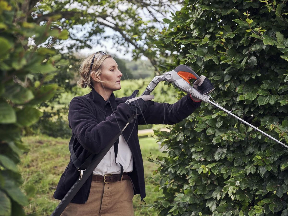 De Husqvarna 520iHT4 is een accu gevoede telescopische heggenschaar met hoge capaciteit en een bereik tot 4,5 m, ontworpen voor professioneel gebruik. Hij snijdt efficiënt brede, hoge en lage heggen dankzij de in lengte verstelbare telescoopbuis en de in hoek verstelbare maaibalk. De maaibalk kan ook gemakkelijk worden opgevouwen voor eenvoudiger transport en opslag. Deze machine combineert marktleidende prestaties met nul directe emissies, laag gewicht, lage trillingsniveaus en extreem stille werking, zodat u hem kunt gebruiken in geluidsgevoelige omgevingen. De beschermkap aan de achterkant beschermt de geïntegreerde batterij om slijtage en schade effectief te voorkomen. Compatibel met alle Husqvarna BLi-batterijen en laders. Weerbestendige IPX 4
