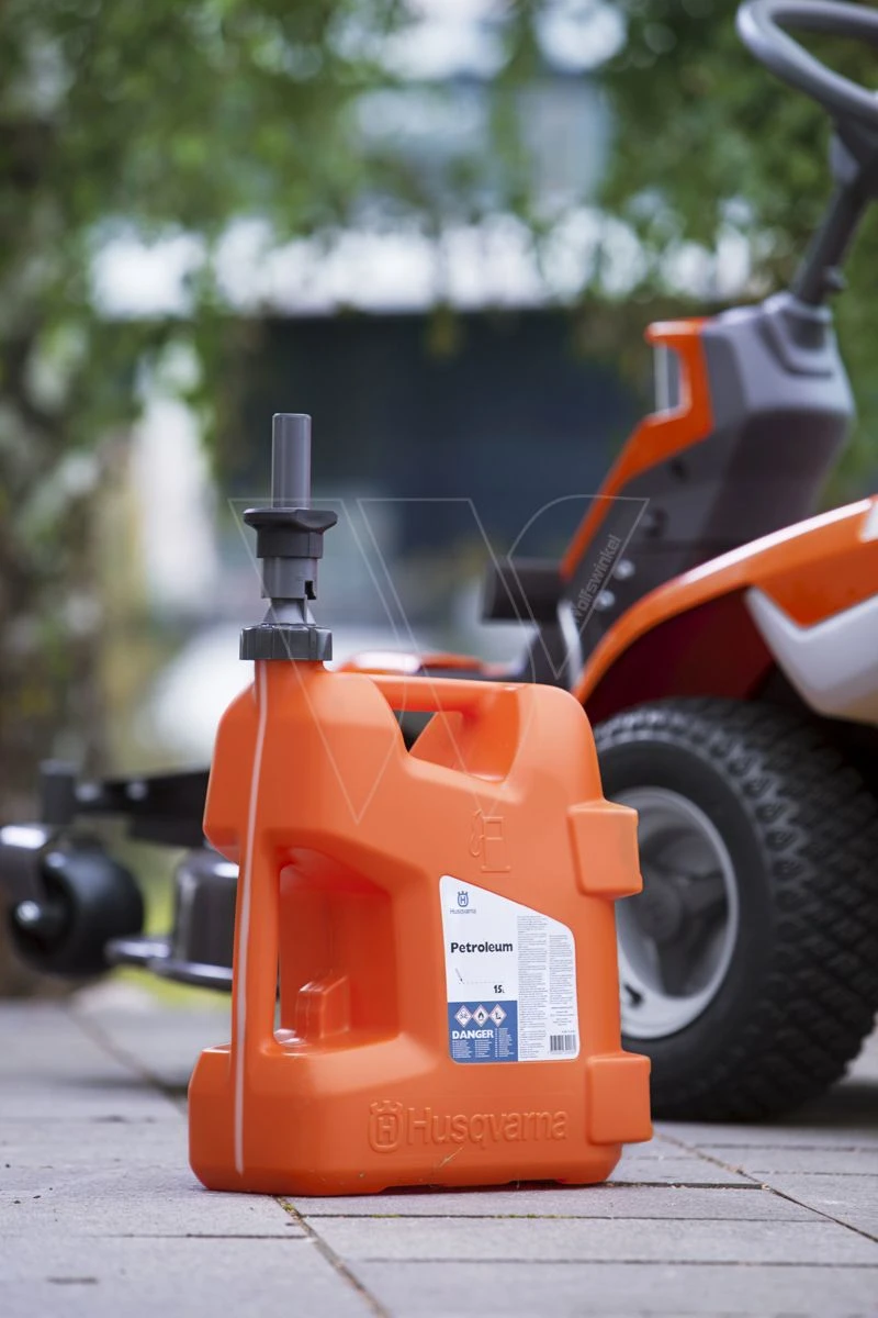 De geheel nieuwe 15 liter jerrycan voor rijdende machines biedt een innovatieve manier van tanken. Voornamelijk door de drie uniek gepositioneerde ergonomische handgrepen en het speciale tuit ontwerp. Zo kunt u de jerrycan eenvoudig optillen en dragen en snel tanken zonder spetteren en knoeien.