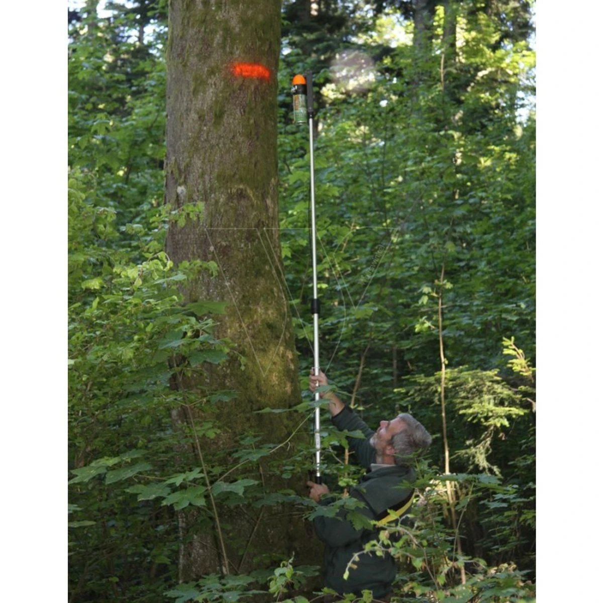 Staaf geschikt voor alle spuitbussen om zelfs op grote hoogte te markeren. Vooral bij het tellen van houtstapels, het markeren van natuurlijke regeneratiegebieden of het voorbereiden van de jacht, is het soms nodig om met de spuitbus wat hoger te reiken.