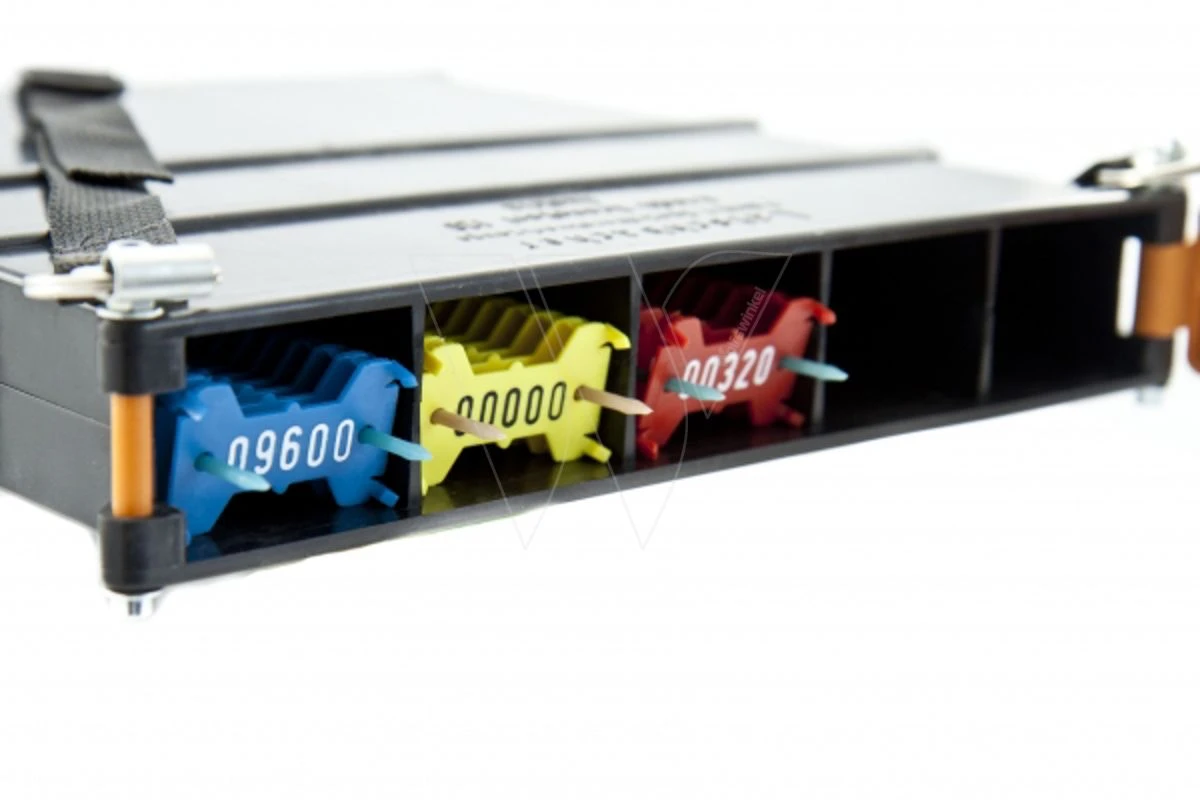 Uitgevoerd in kunststof met een inhoud van 200 kunststof of 250 metalen plaatjes.
