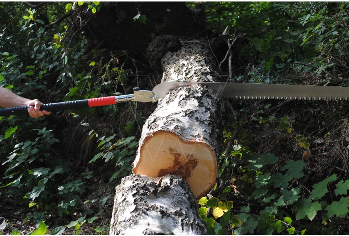 Maak kennis met de langste vouwzaag ter wereld! Deze krachtige trekzaag heeft een blad van maar liefst 100 cm lang, waarmee je met gemak stammen van 50 cm doorzaagt. Je kunt de Katanaboy daarom gerust met een kettingzaag vergelijken, maar dan zonder olie, brandstof, lawaai en vervuiling. Bovendien is de zaag met een gewicht van slechts 2 kg makkelijk mee te nemen.