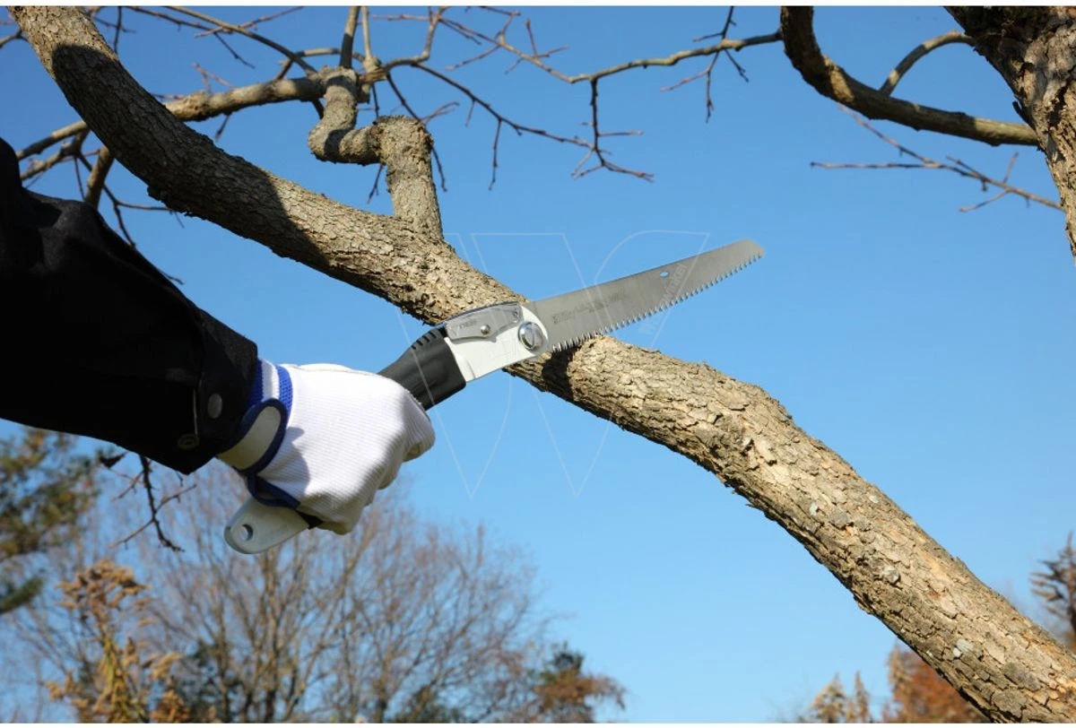 Deze vouwzaag heeft een grote aluminium handgreep omkleed met rubber dat zorgt voor een perfecte grip en absorptie van de trillingen tijdens het zagen.