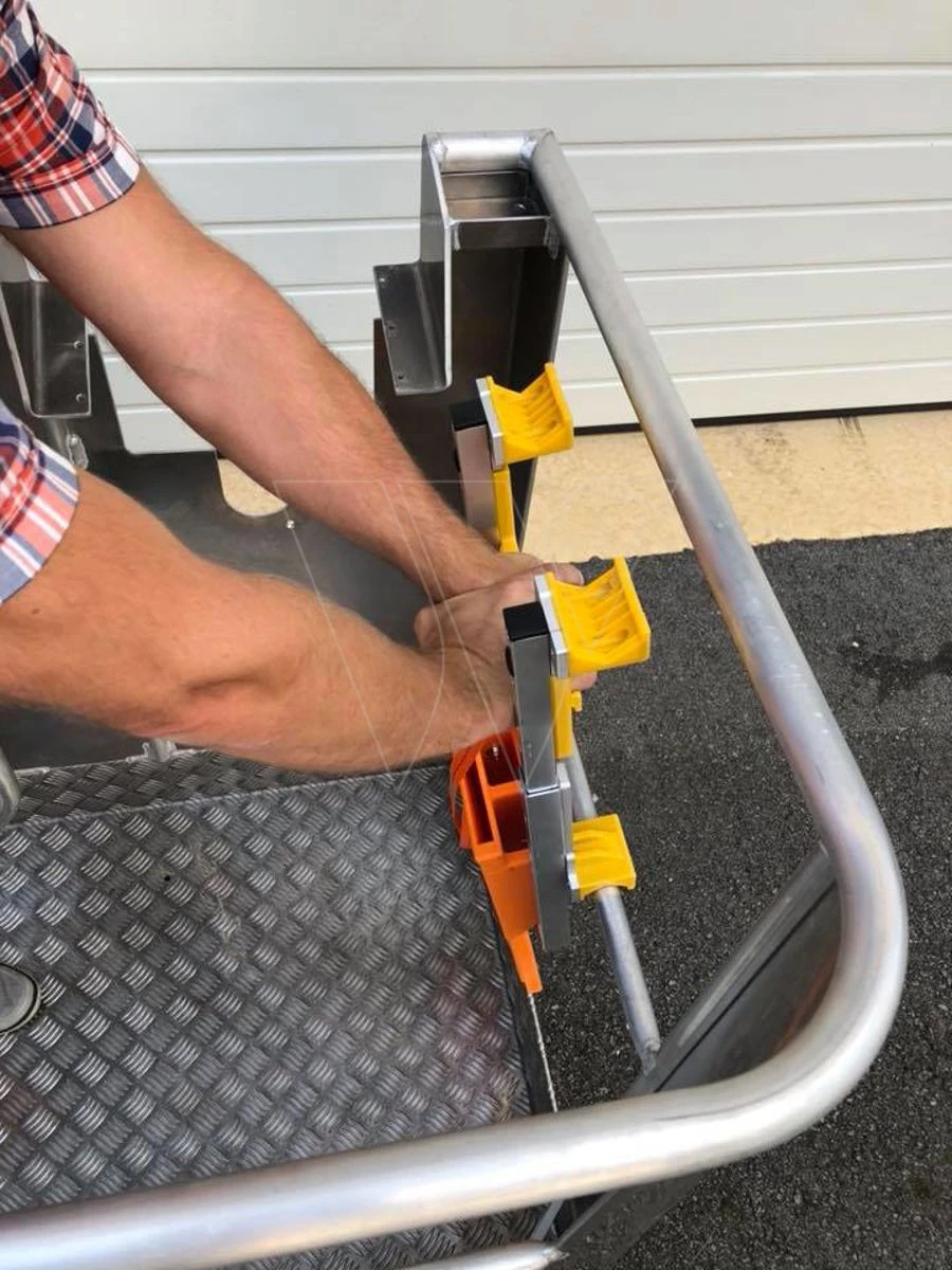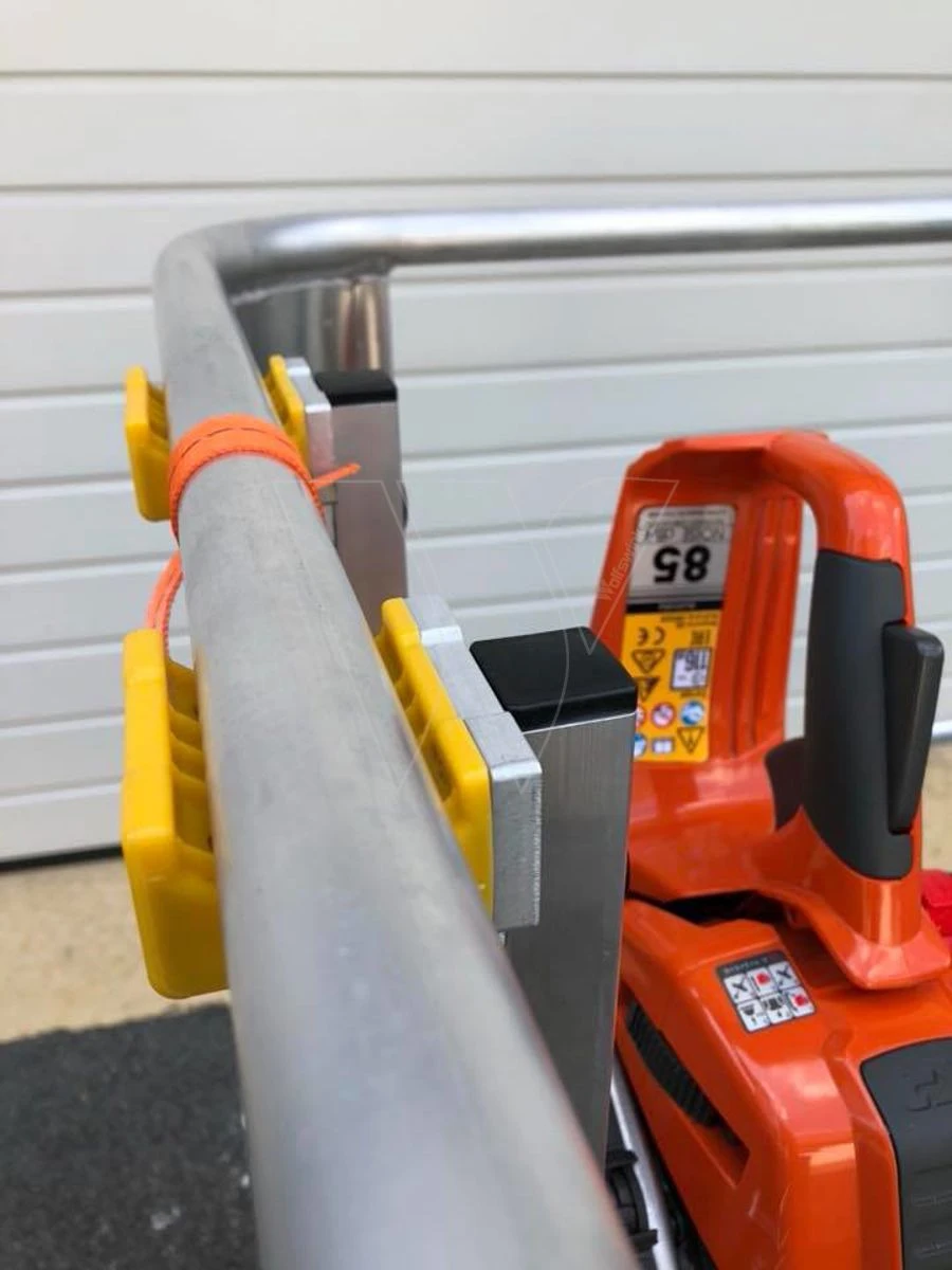 De Toolprotect universele aanbouwadapter kan eenvoudig, snel en zonder gereedschap aangebracht worden in een hoogwerkerbak. U kunt de Flexbox om gereedschappen, mobiele telefoon en of tablet in op te bergen zonder gereedschap aansluiten op deze aanbouw adapter. U kunt ook alle kettingzaaghouders van Toolprotect hier aan bevestigen. Op deze manier kunt u alle gereedschappen, uw kettingzaag en zelfs uw handzaag gemakkelijk en snel opbergen in de hoogwerkerbak.