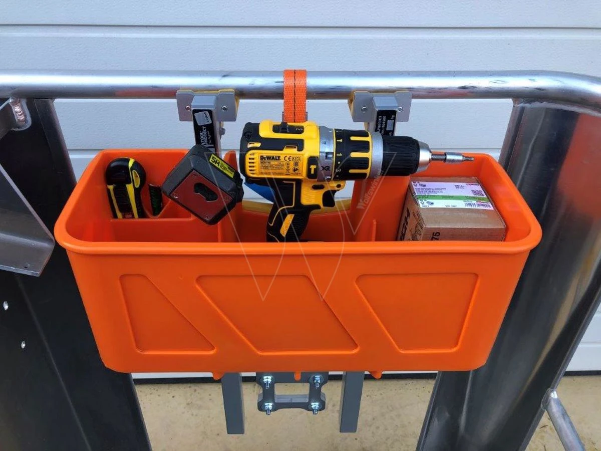 De Toolprotect Flexbox-Pro bestaat uit de Flexbox-Solo met daarin een gegoten beugel waardoor deze makkelijkt te monteren is op de universele aanbouwadapter AKA-Pro. Hierdoor kunt u deze combinatie gemakkelijk, snel en veilig aanbrengen in een hoogwerkerbak zonder het gebruik van gereedschap.
