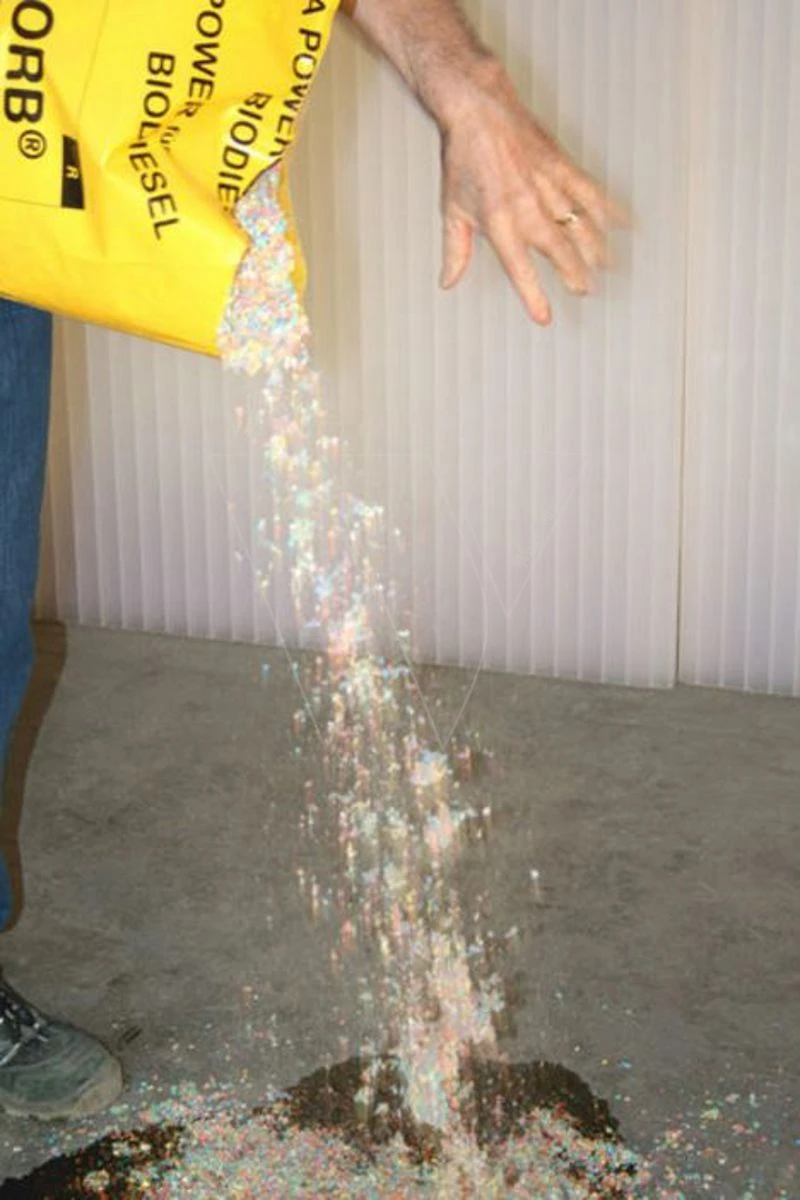 De nieuw ontwikkelde oliebindende granulaat met extreem hoge ingangsvermogen. Bindt gemorste olie en andere vloeistoffen super snel, veilig en betaalbaar. Zoals olie bindmiddelen getest en goedgekeurd voor de openbare verkeer.